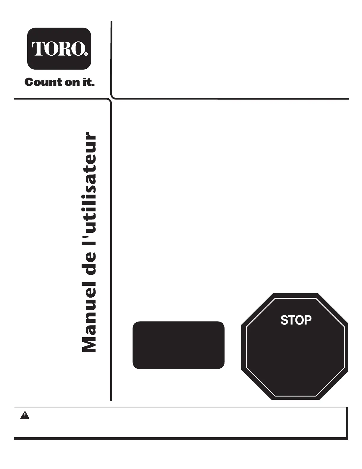Pour réduire les risques de blessures, l’utilisateur doit lire et veiller à bien comprendre le manuel d’utilisation.