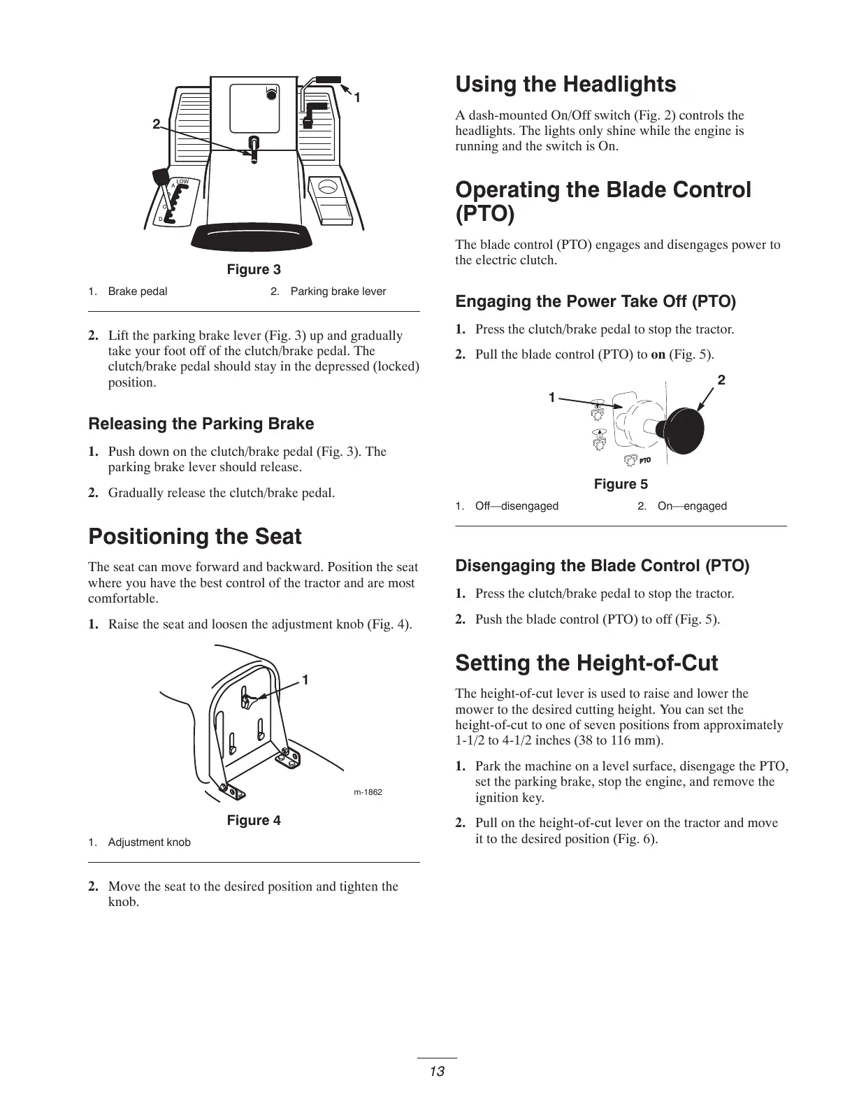2. Pull the blade control (PTO) to on (Fig. 5).