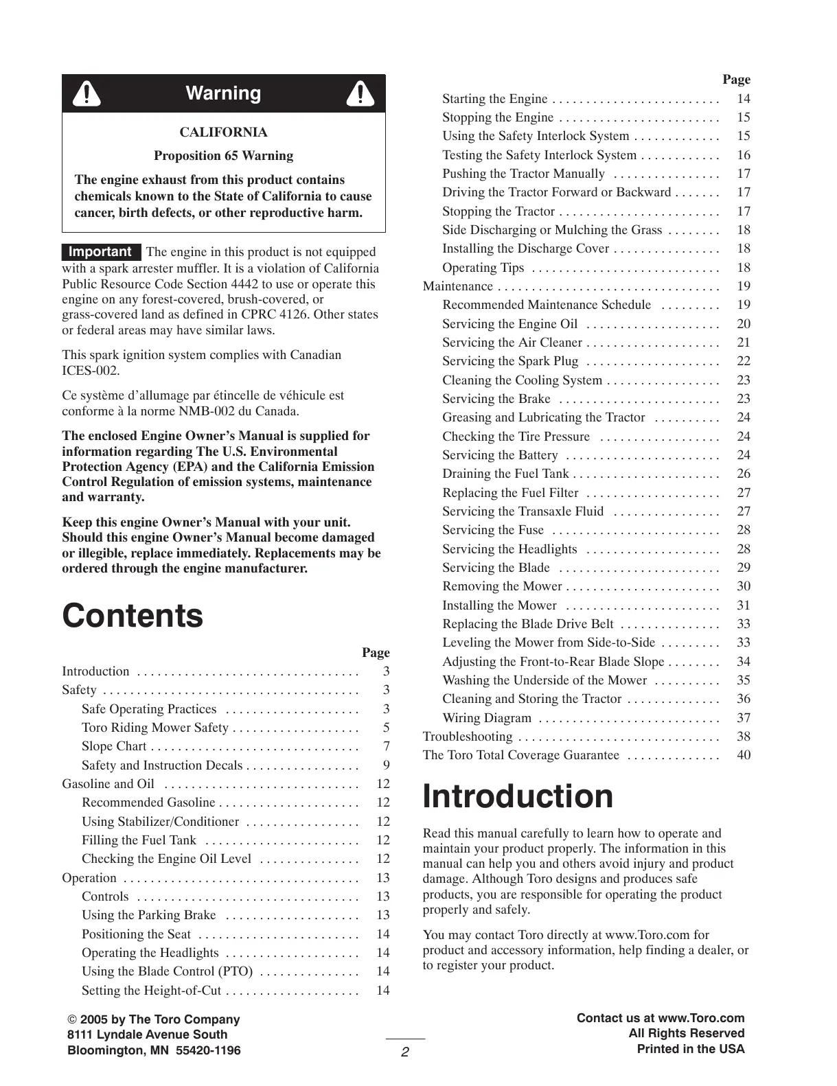 Toro Riding Mower Safety 5. . . . . . . . . . . . . . . . . . .