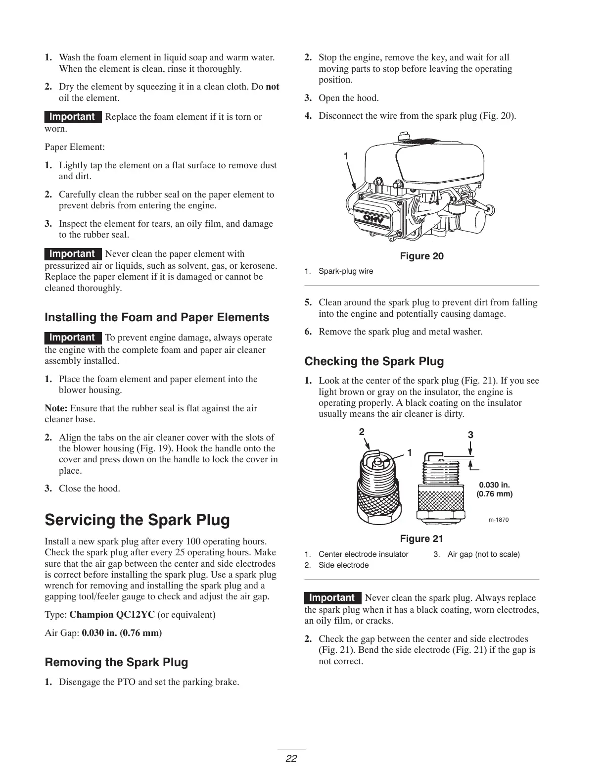 4. Disconnect the wire from the spark plug (Fig. 20).