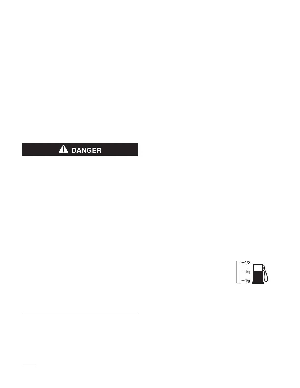 • Use a funnel and fill the fuel tank outdoors,