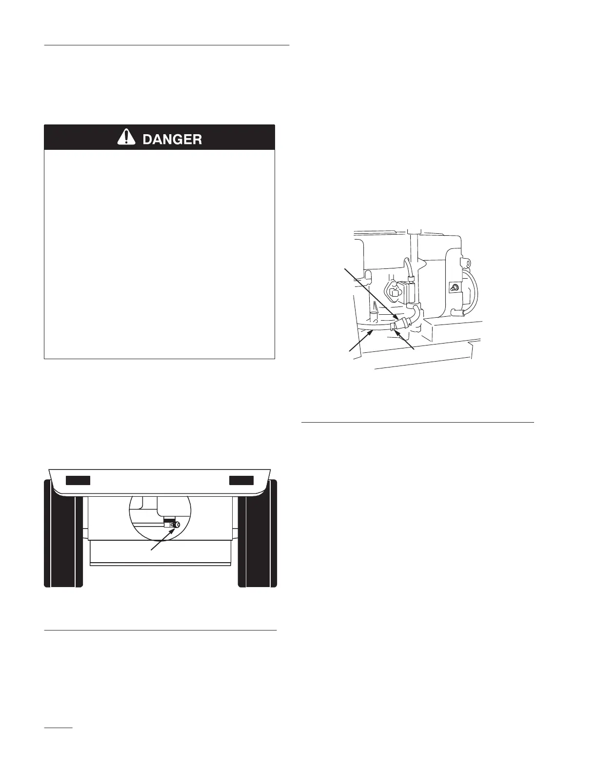 • Drain gasoline from the fuel tank when the