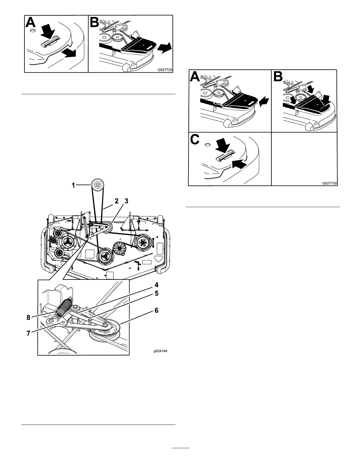 3. Remove the mower belt; refer to Replacing the