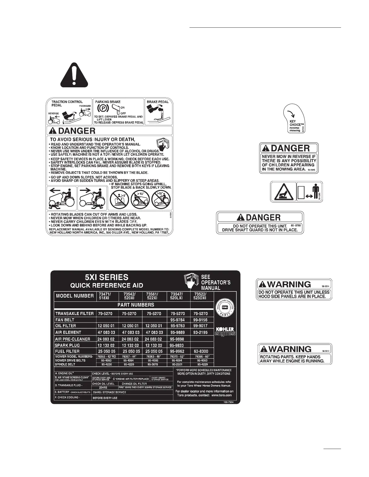 Toro 73542 - Safety and Instruction Decals; Decal Locations and Identification; Quick Reference Aid