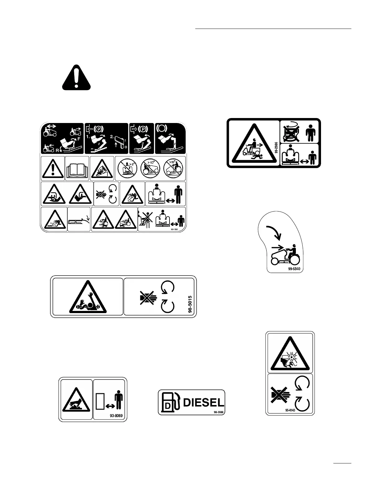 any area of potential danger. Replace any decal that is damaged or lost.
