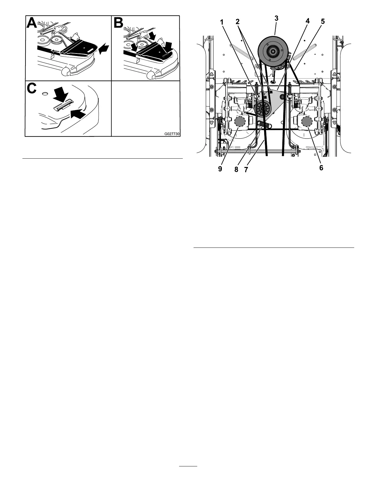 3. Remove the mower belt; refer to Replacing the