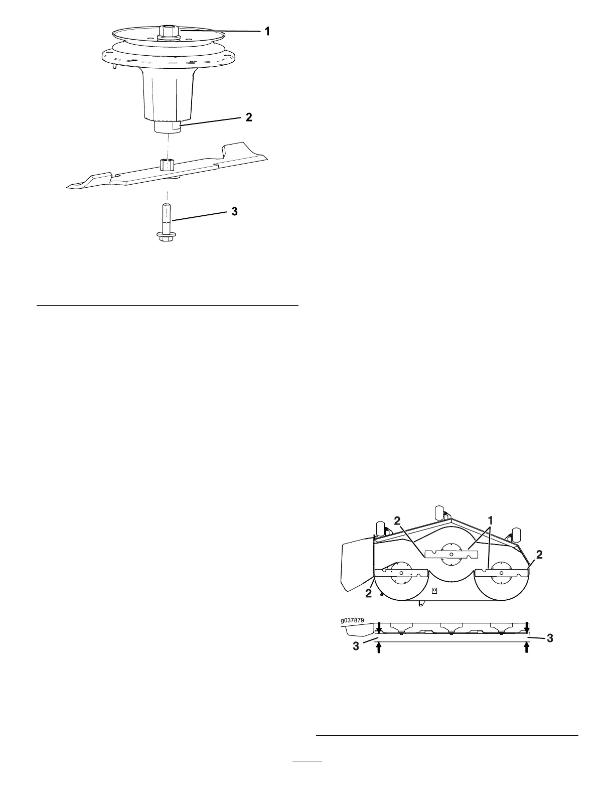 1. T op spindle nut 3. Blade bolt