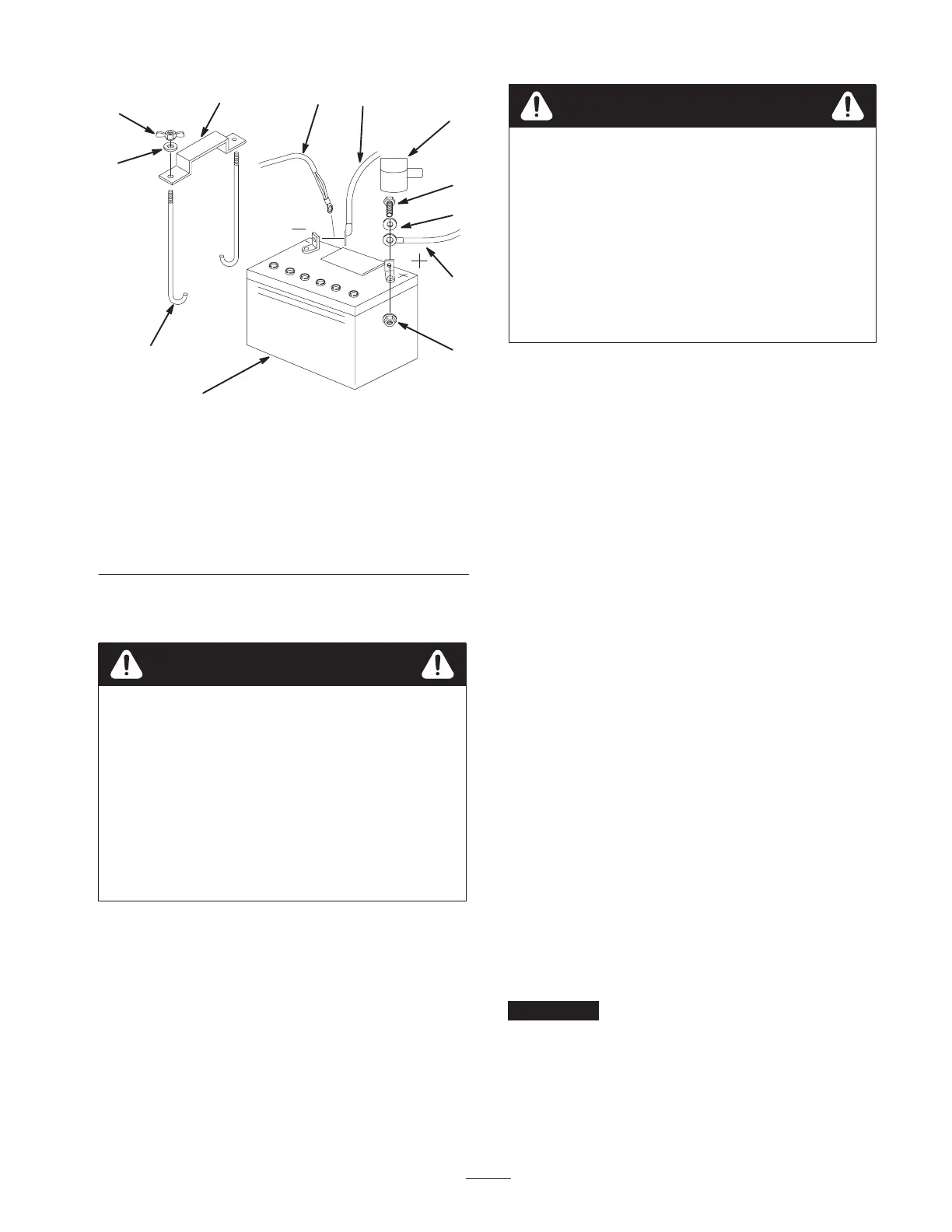 6. Remove both wing nuts (1/4 inch) securing the battery
