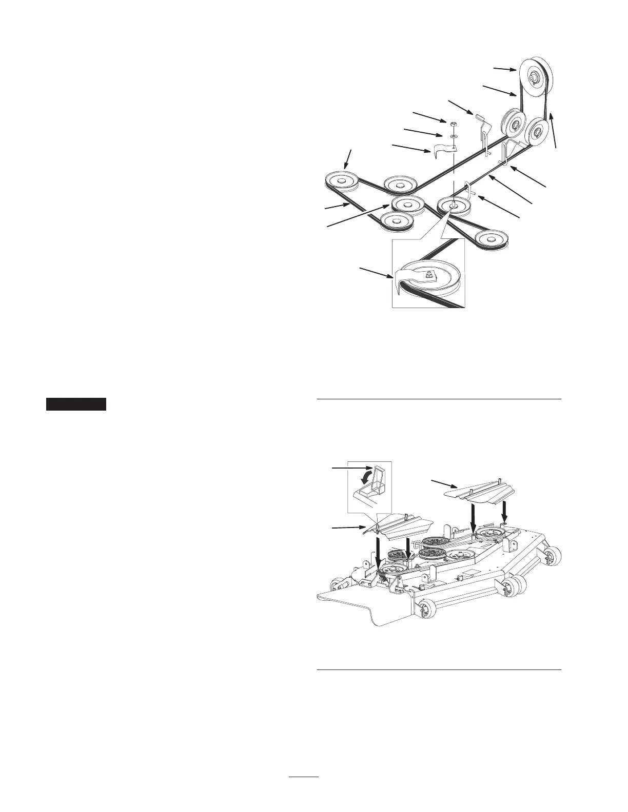 9. Adjust the belt tension, refer to Adjusting the Mower