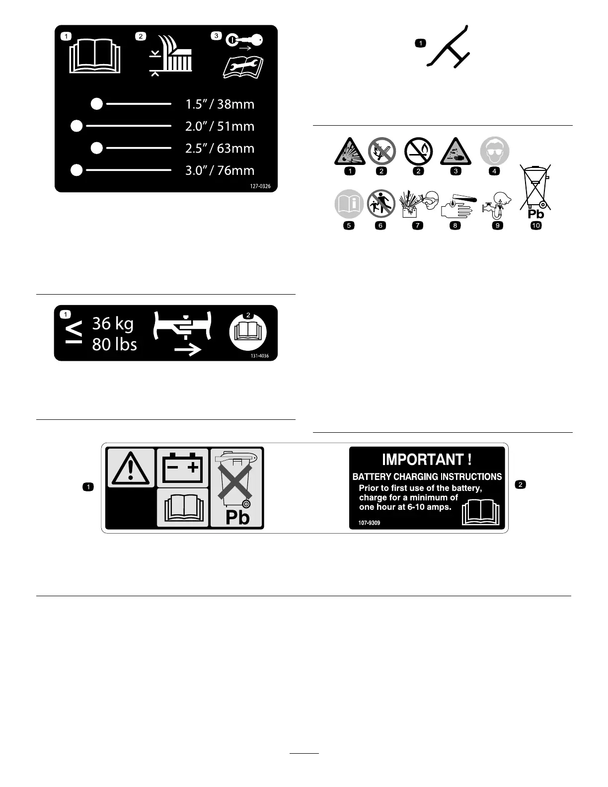 1.Warning—readtheOperator'sManualforinformationonchargingthebattery;containslead;donotdiscard.