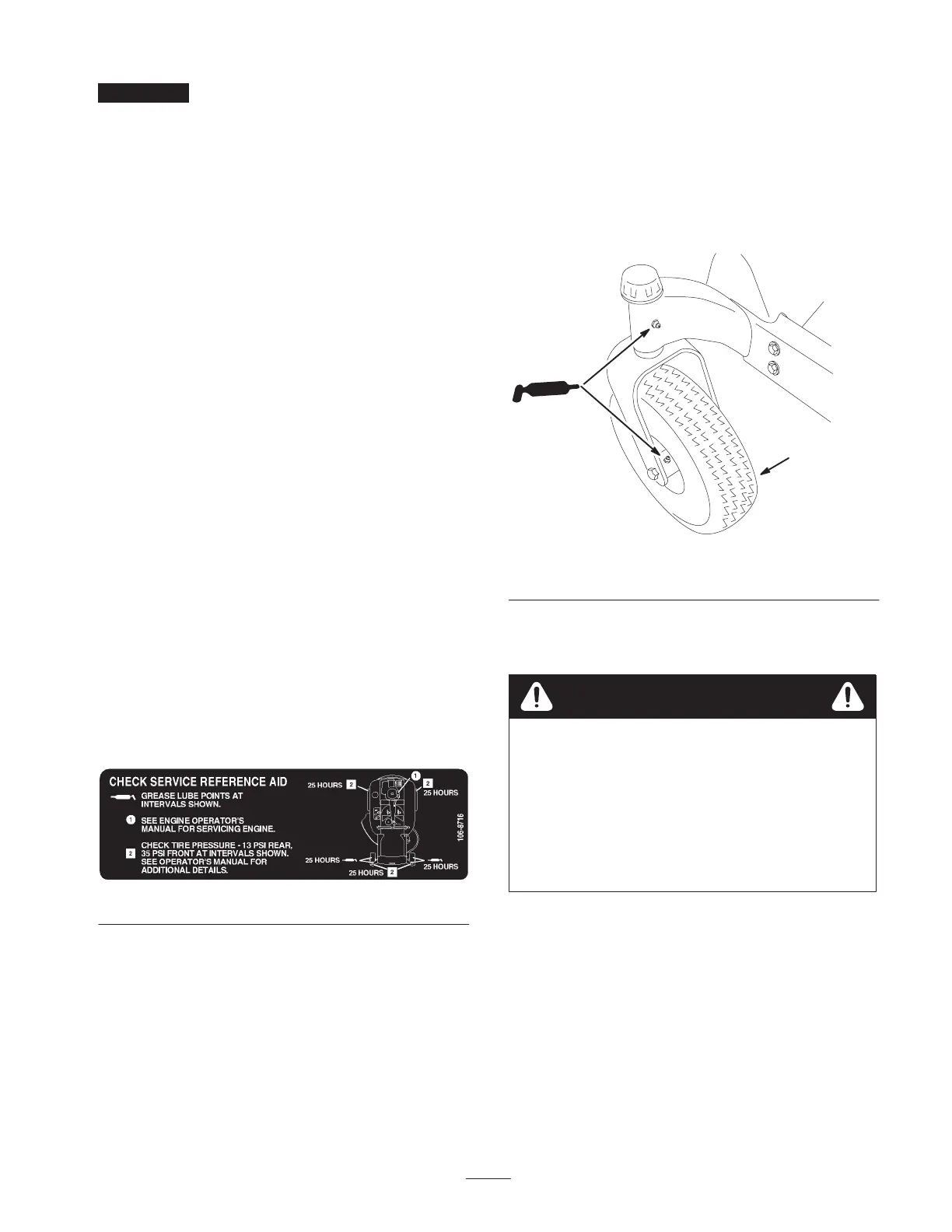 3. Grease the front caster pivot and drive wheels (Fig. 31).