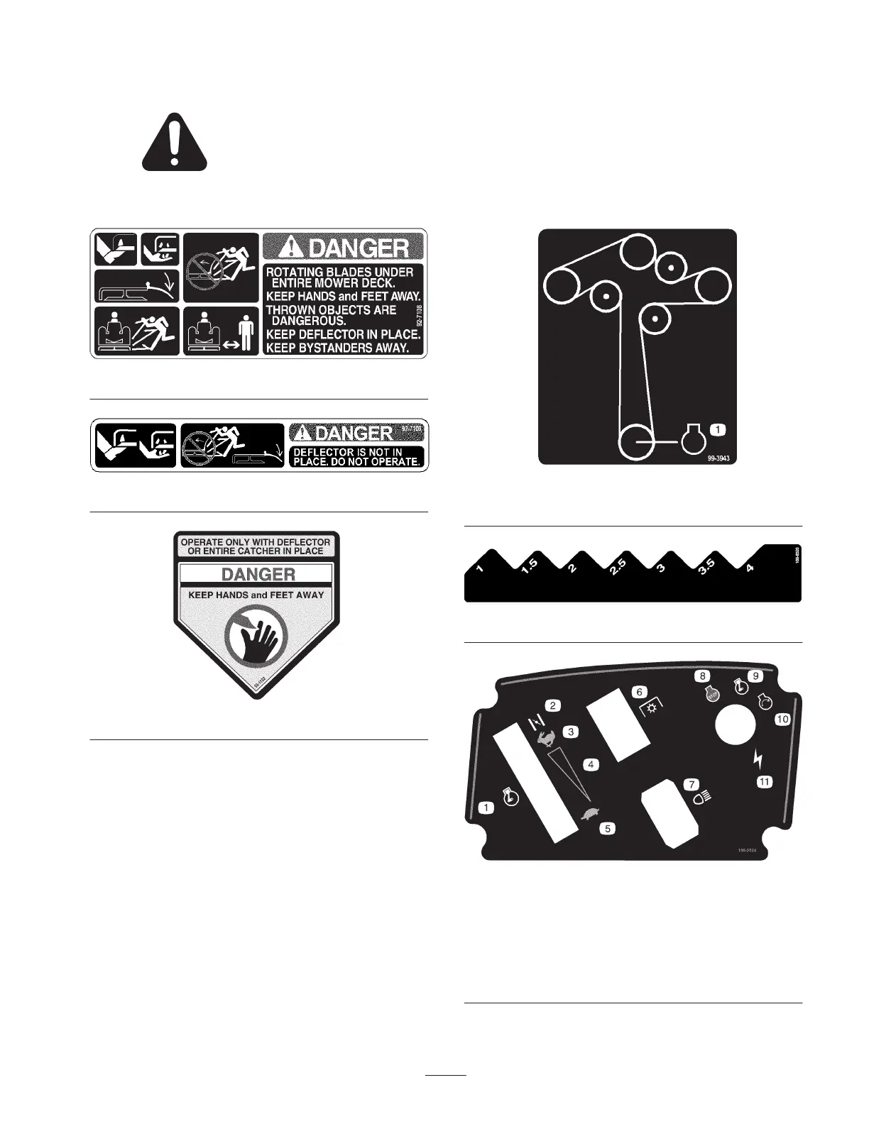 Safety decals and instructions are easily visible to the operator and are located near any area