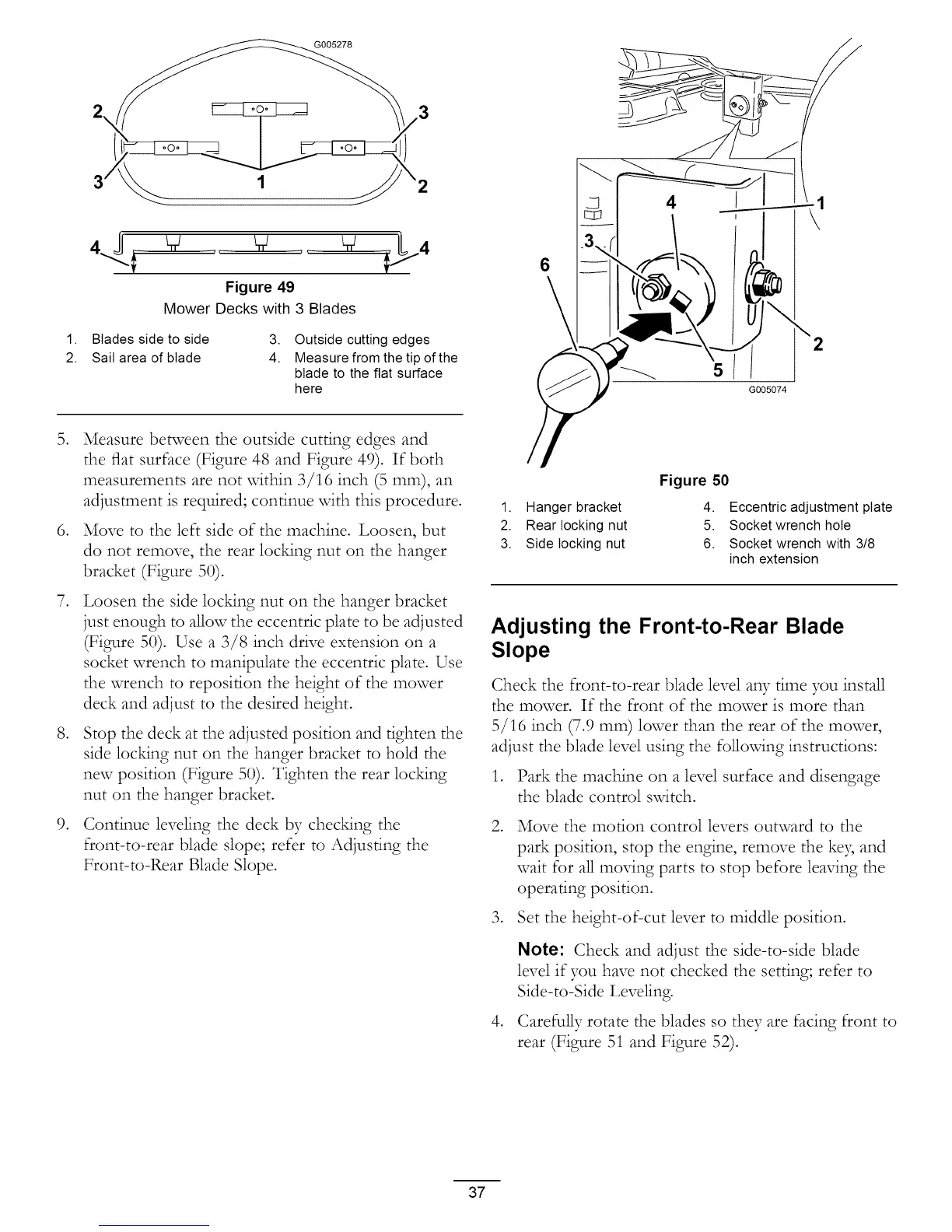 front-to-rear blade slope; refer to Adjusting the