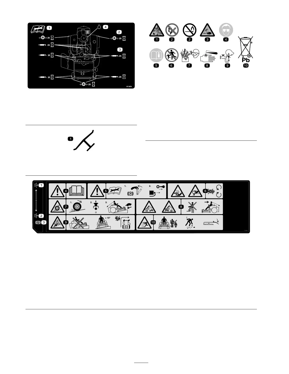 5. Warning—before servicing or performing maintenance, read the instructions; set the parking brake, remove the ignition key and