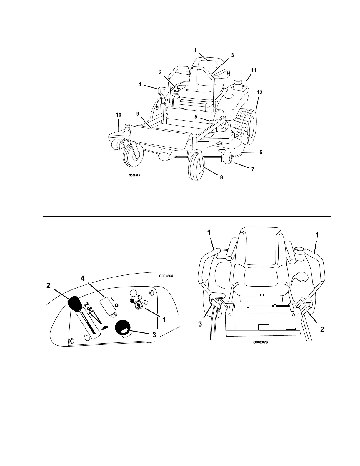 4. Height of cut lever 7. Anti-scalp wheel 10. Discharge chute