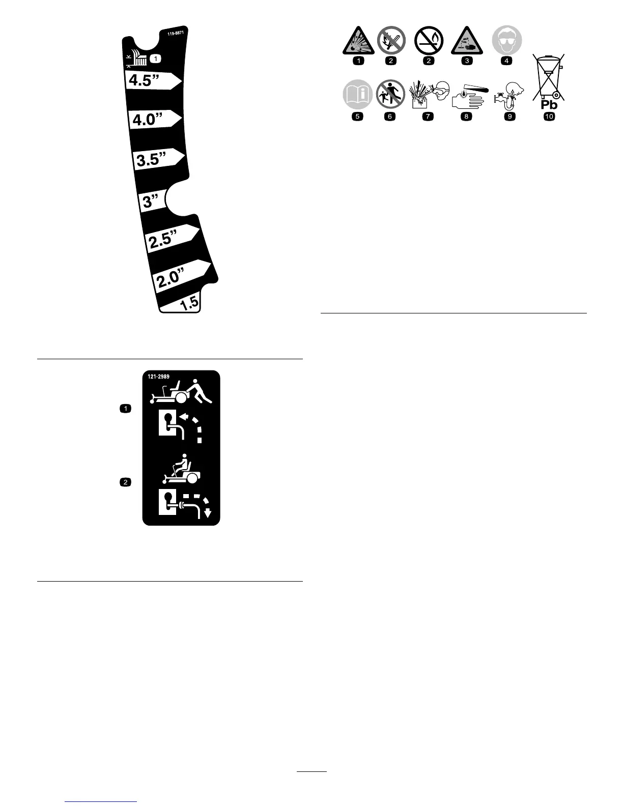 Toro 74621 - Height-of-Cut Indicator; Battery Symbols and Bypass Levers