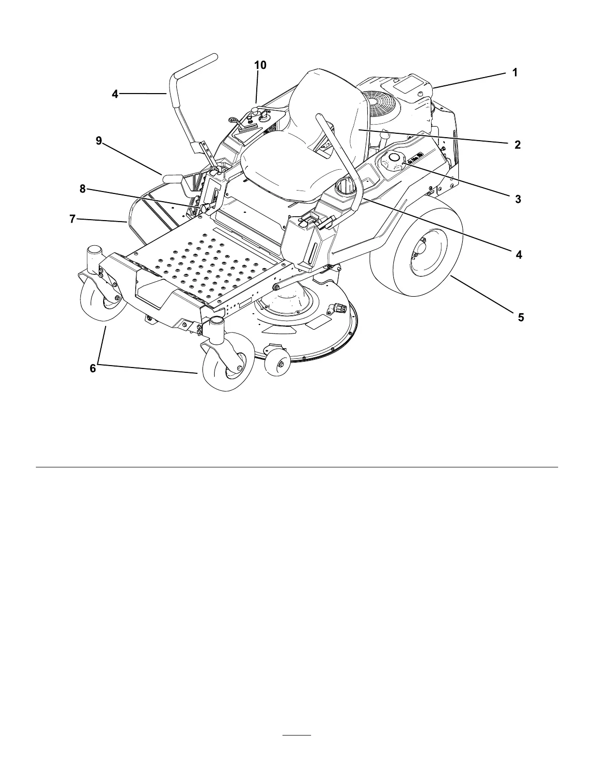 3. Fuel-tank cap 6. Front caster wheel