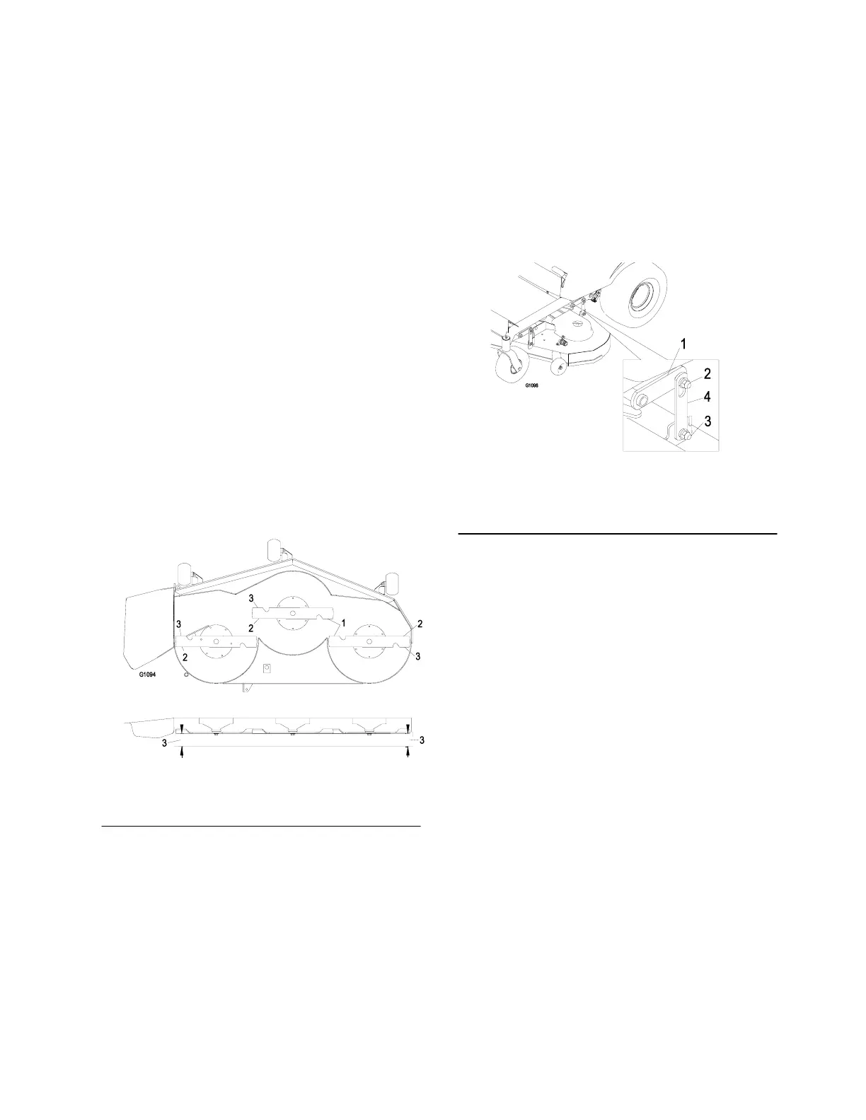 1. Deck lift arm 3. Leveling adjust locking nut