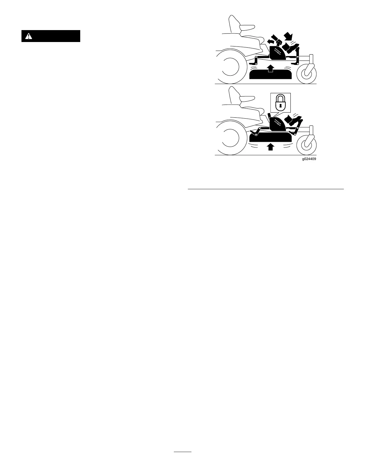 Theoperatorcanusethefootpedaltoliftthedeckbrieyto
