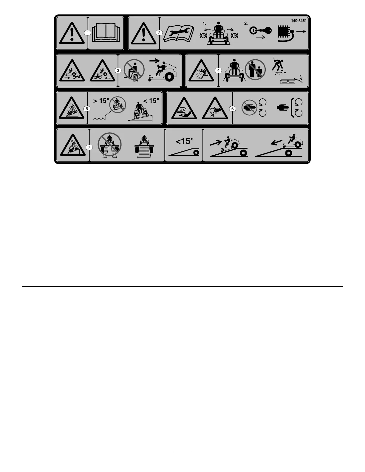 1.Warning—readtheOperator’sManual.5.Tippinghazard—donotusethemachineneardrop-offsoron