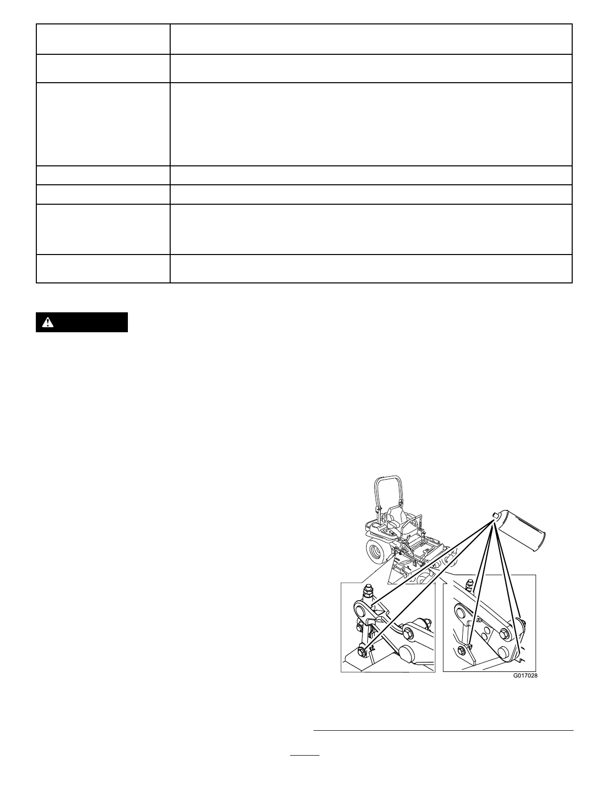 •Greasethefrontcasterpivots(moreoftenindirtyordustyconditions).
