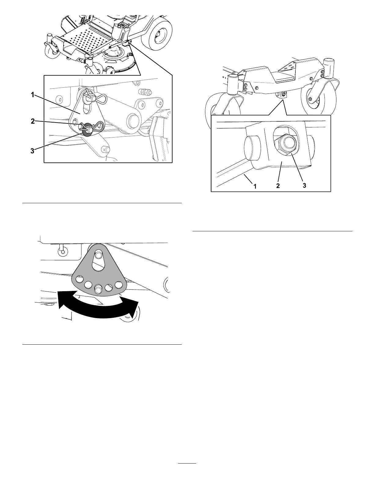 3. T o lower the front of the mower deck, loosen the