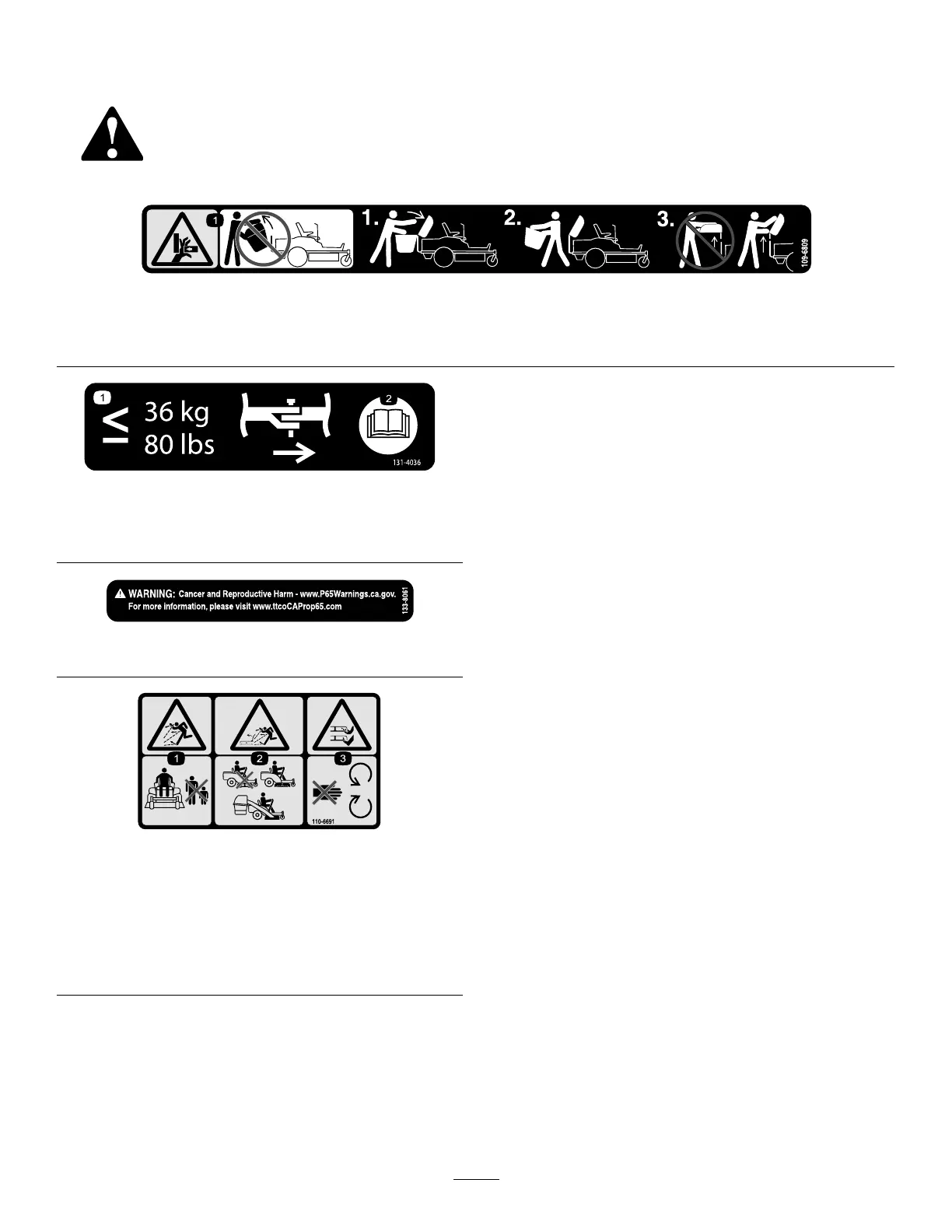 2. Thrown object hazard, mower—do not operate without the