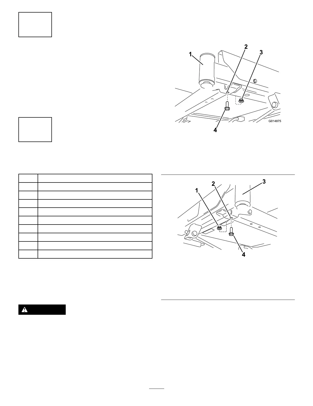 2. Front hole, left side 4. Bolt (3/8 x 1 inch)