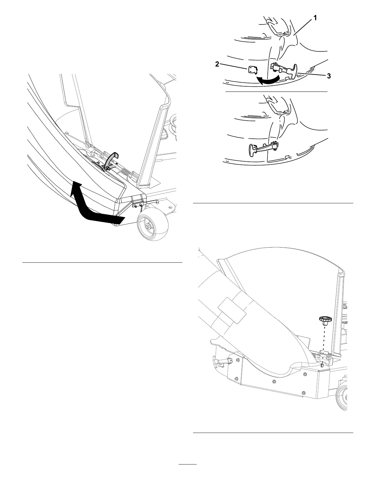 1. Install the chute to the mower deck with the