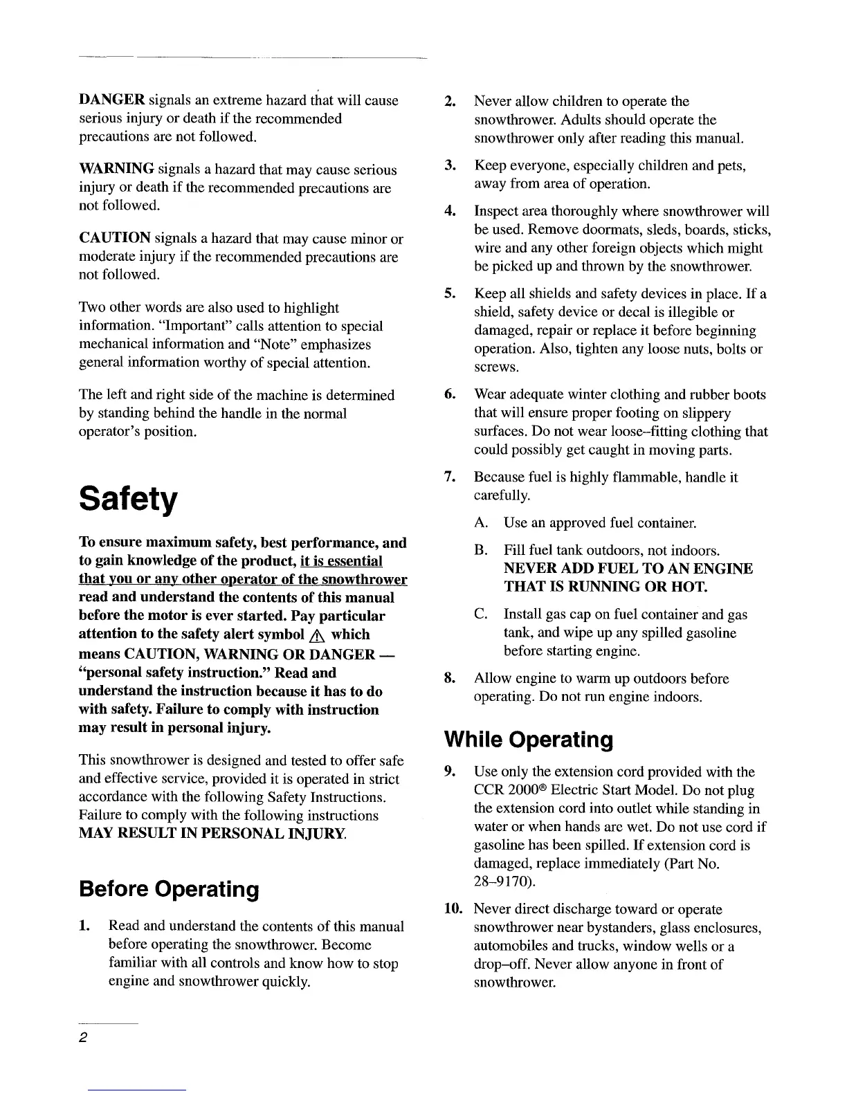 Toro CCR 2000 - Safety; Before Operating; While Operating