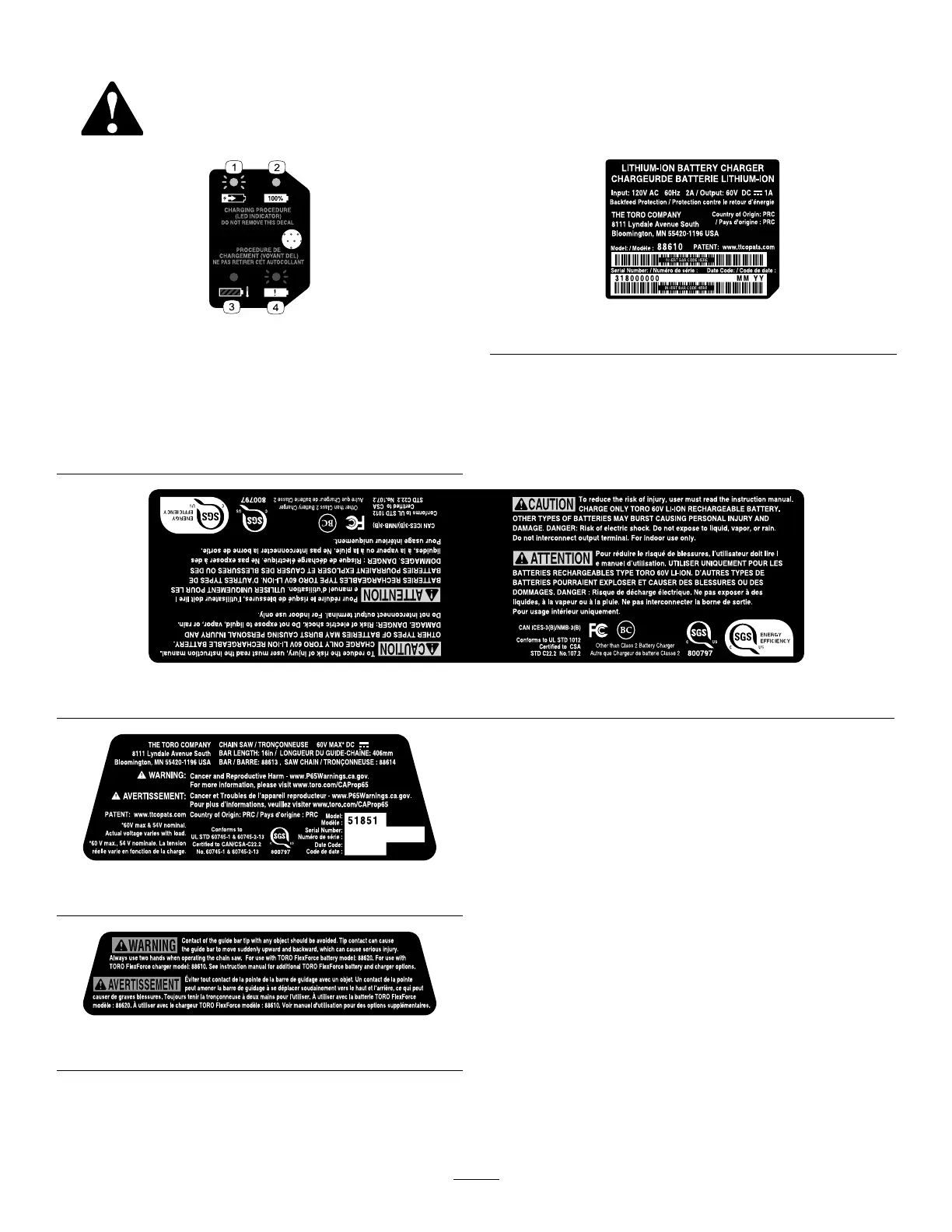 Toro Flex-Force Power System MAX - Autocollants de Sécurité Et Dinstruction