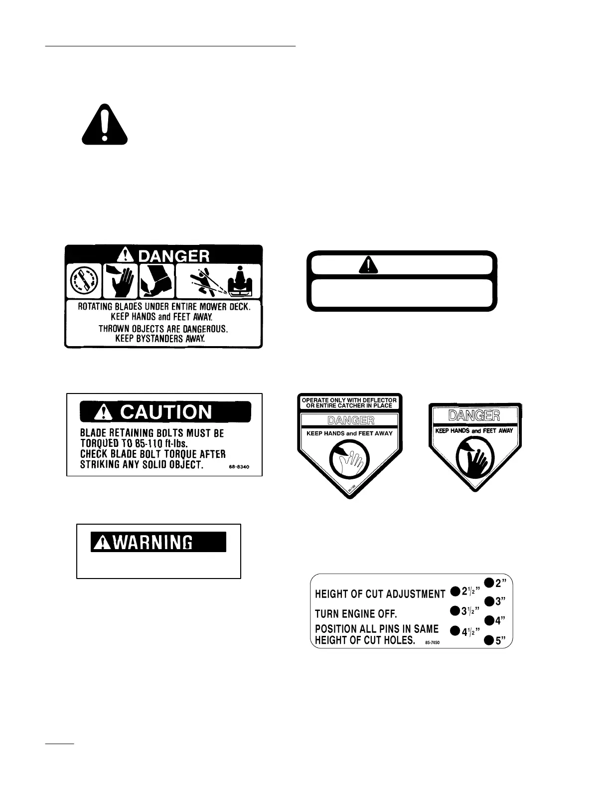 any area of potential danger. Replace any decal that is damaged or lost.