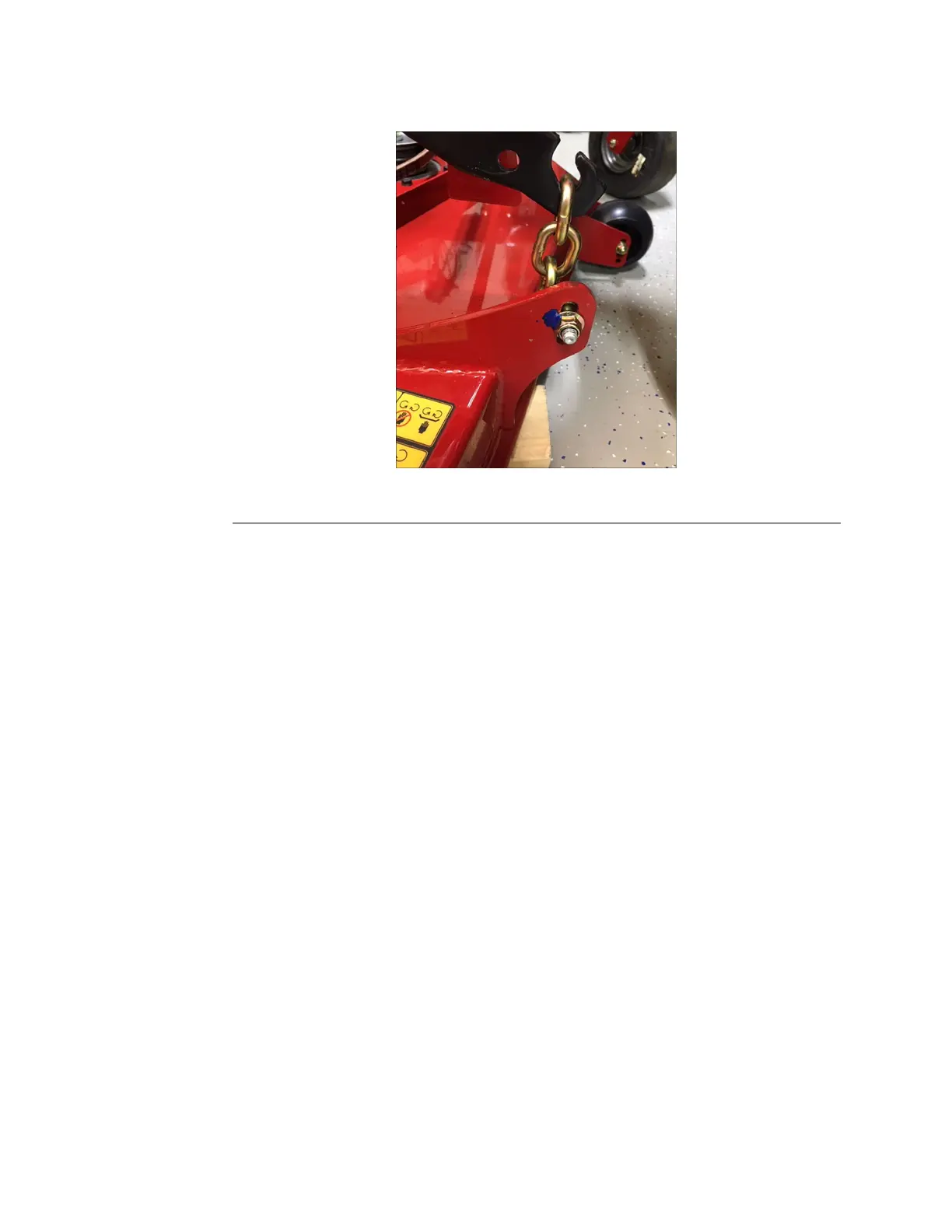 9.Removethe2boltsandnutssecuringthedeckliftchainstothedeckshell.