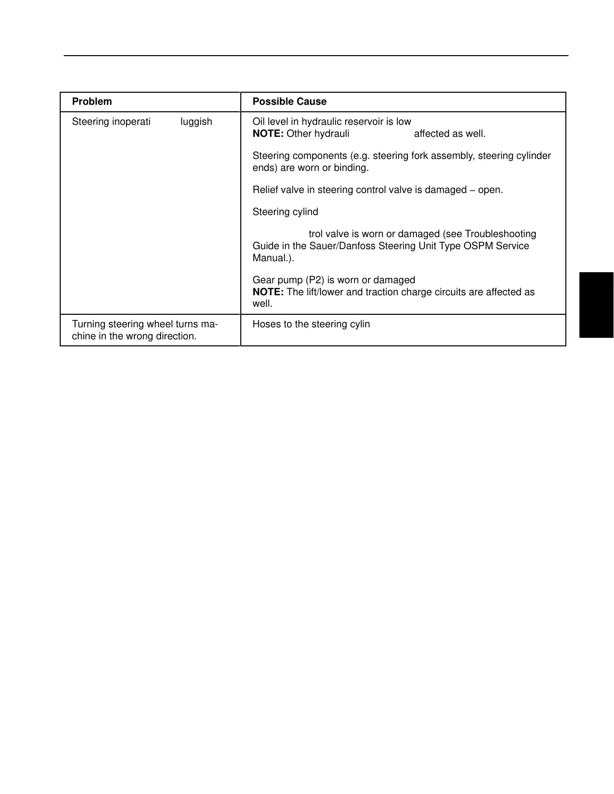 Steering control valve is worn or damaged (see Troubleshooting