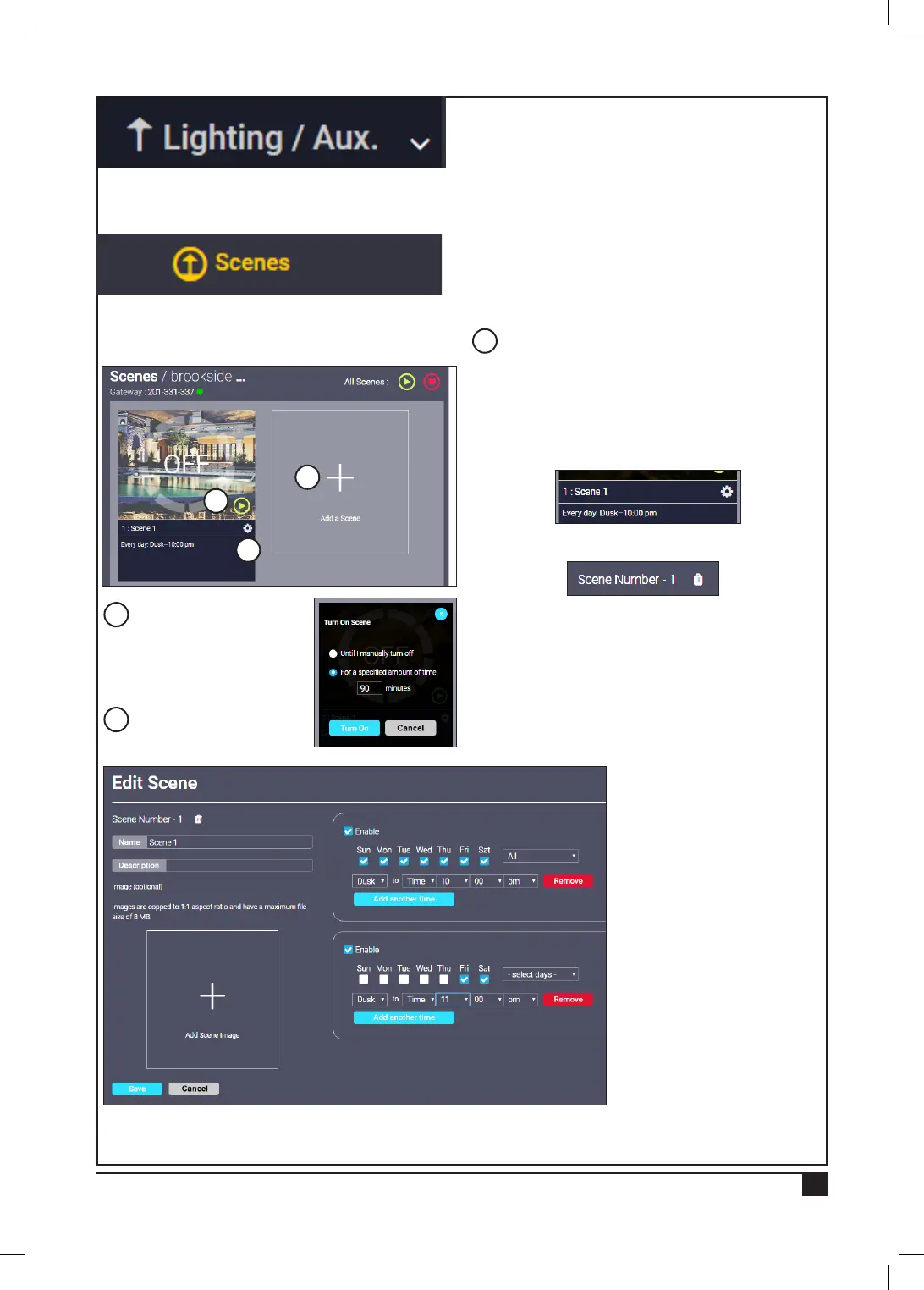 daily Scene lighting schedule from dusk until 10pm.