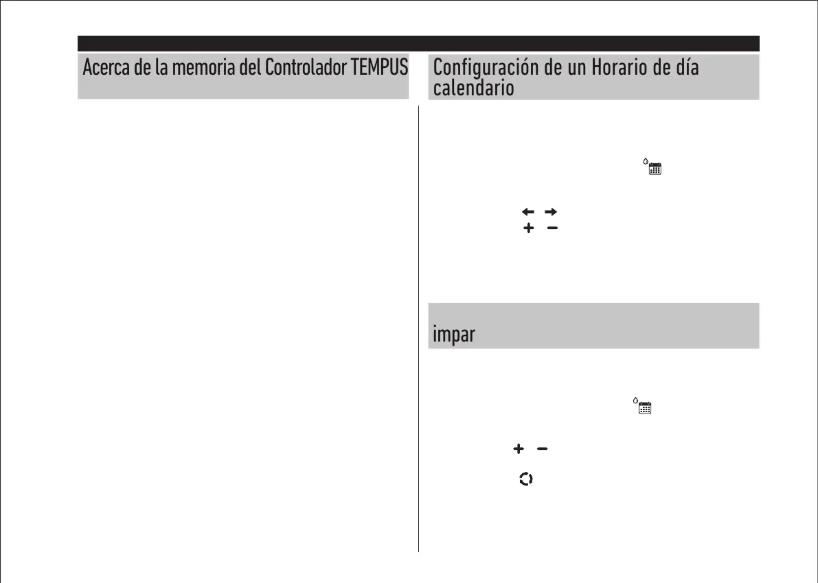 Nota: El MODO DE DÍA en las configuraciones debe ajustarse en IMPAR/PAR.