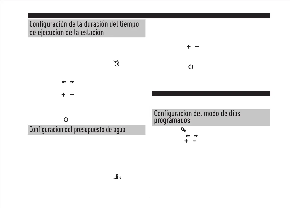 configuración del presupuesto de agua (diferente del 100%), el símbolo de % se