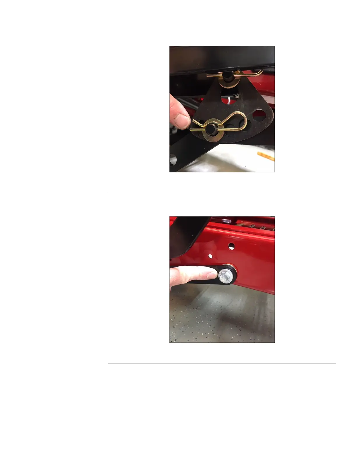 18.Removethe2hairpinandwasherstodisconnecttheliftlinkfromthedeck