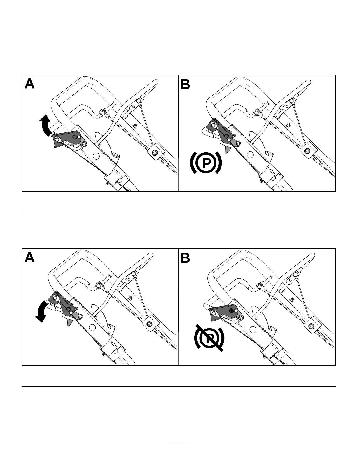Disengagetheparkingbrakebypushingthebrakeleverdownawayfromthehandle(Figure18).