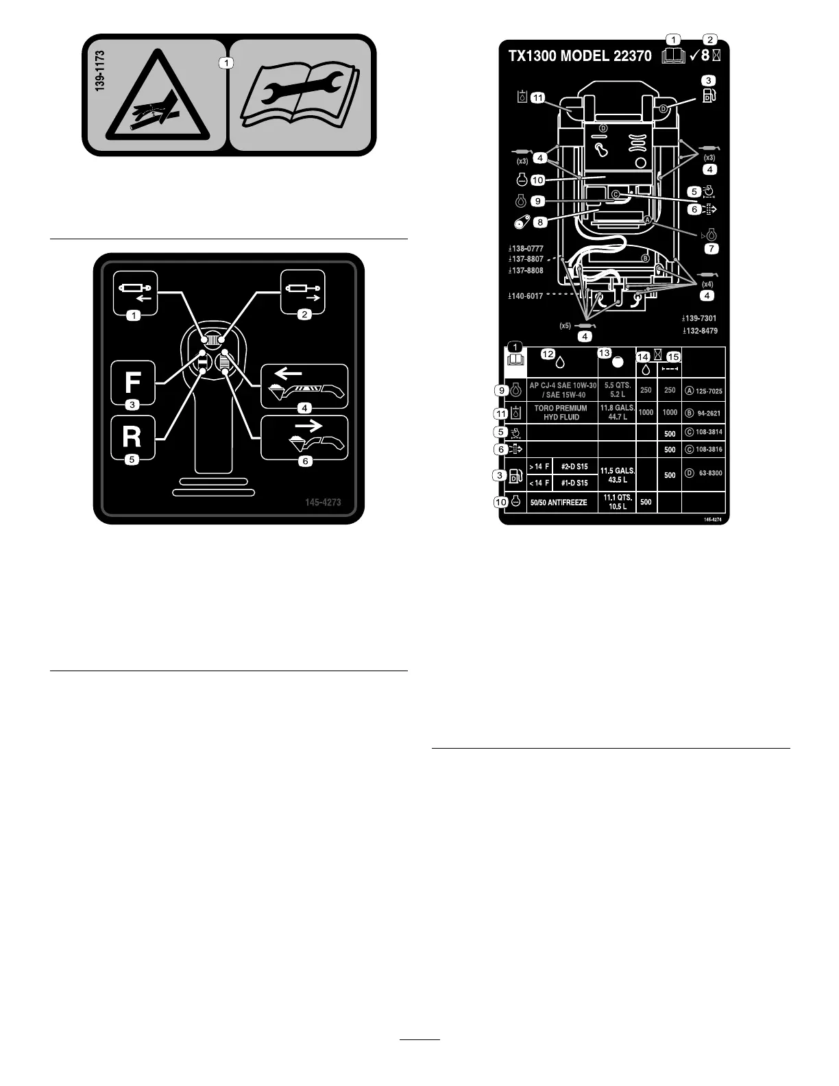 Toro TX 1300 - Machine Information Decals; Fluid Hazard and Control Decals