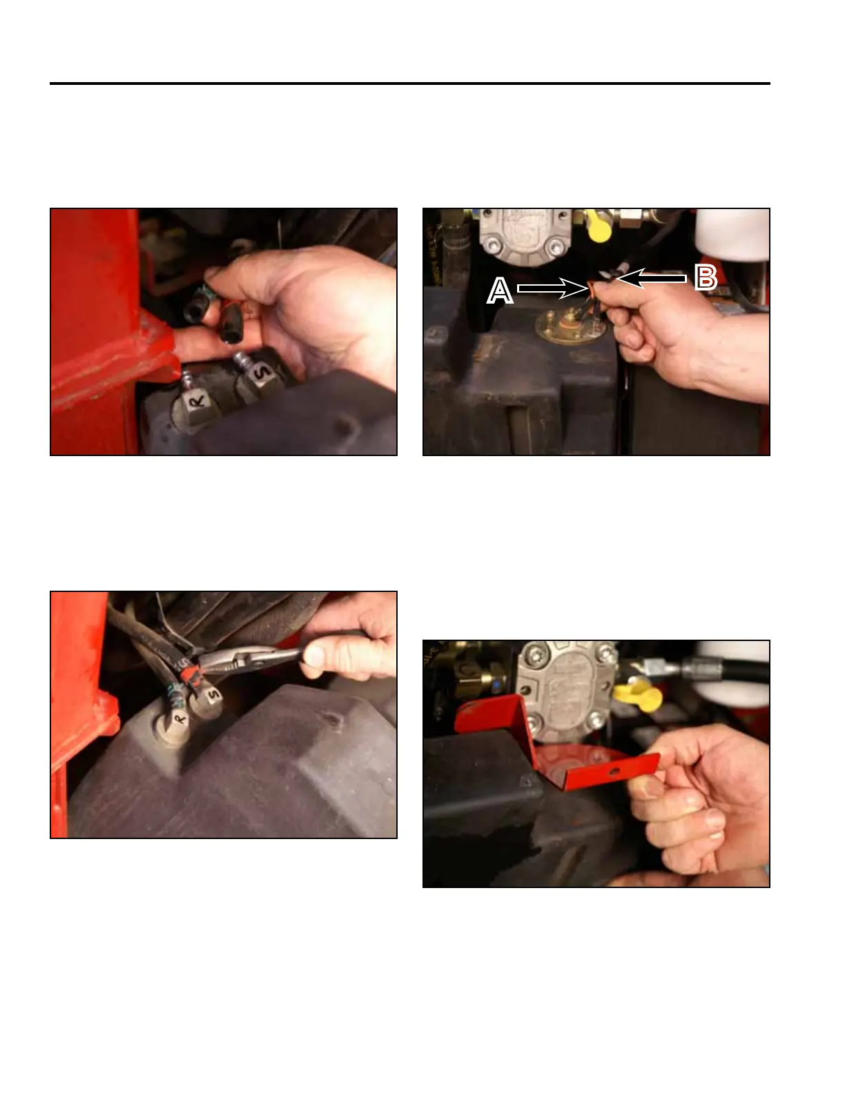 8. Position the 2 fuel hose clamps to secure the fuel