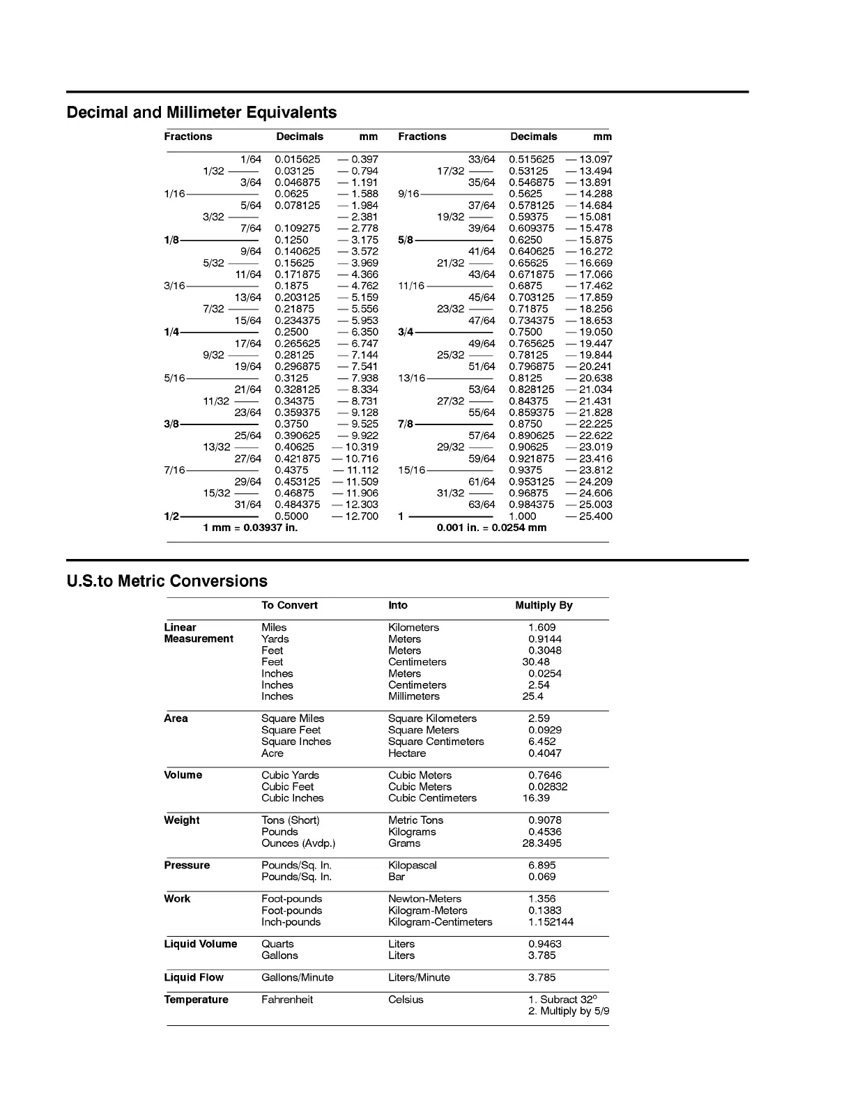 Equivalents and Conversions