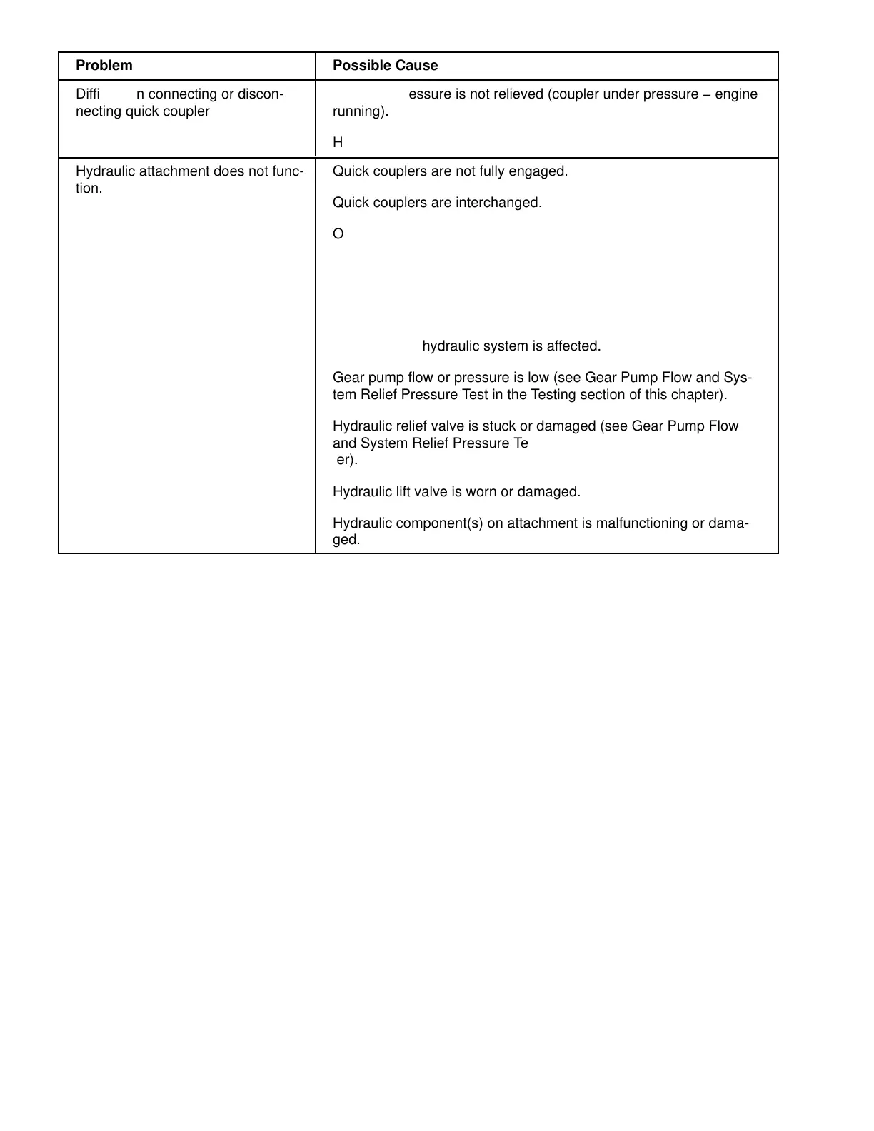 Hydraulic attachment does not func-