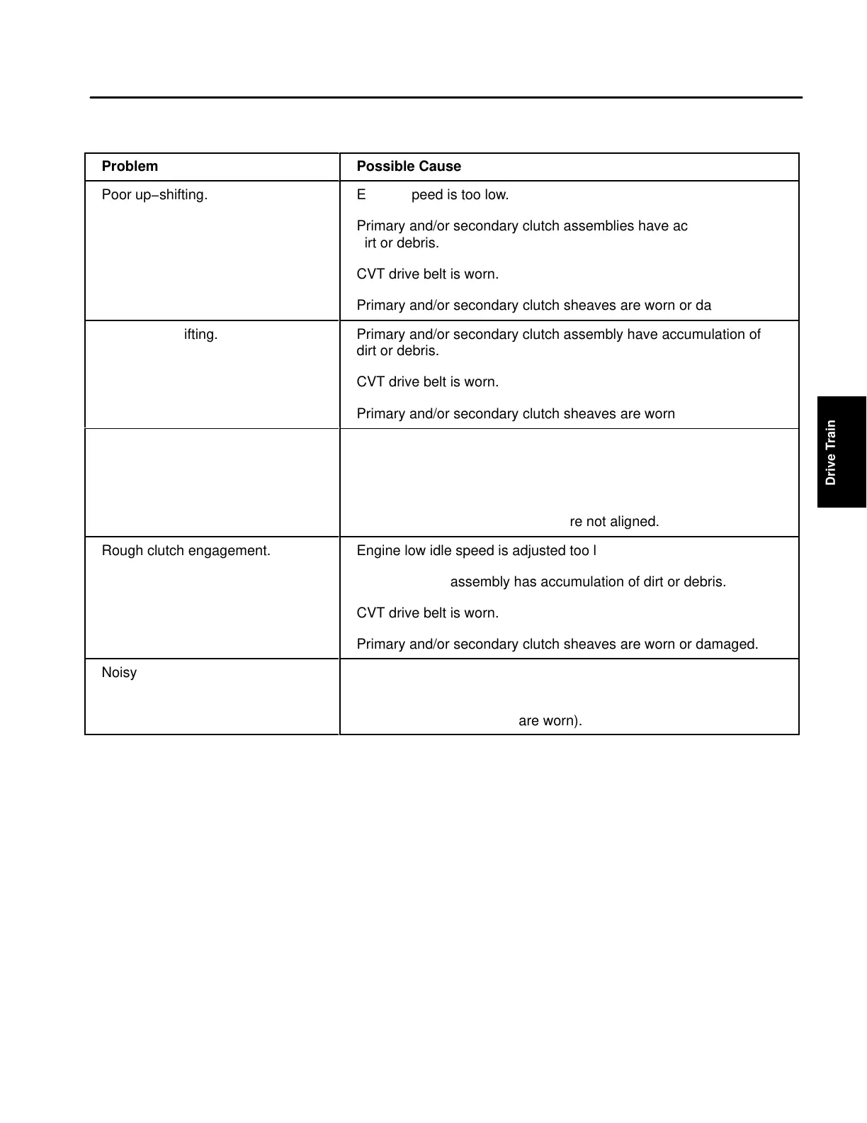 Primary and/or secondary clutch sheaves are worn or damaged.