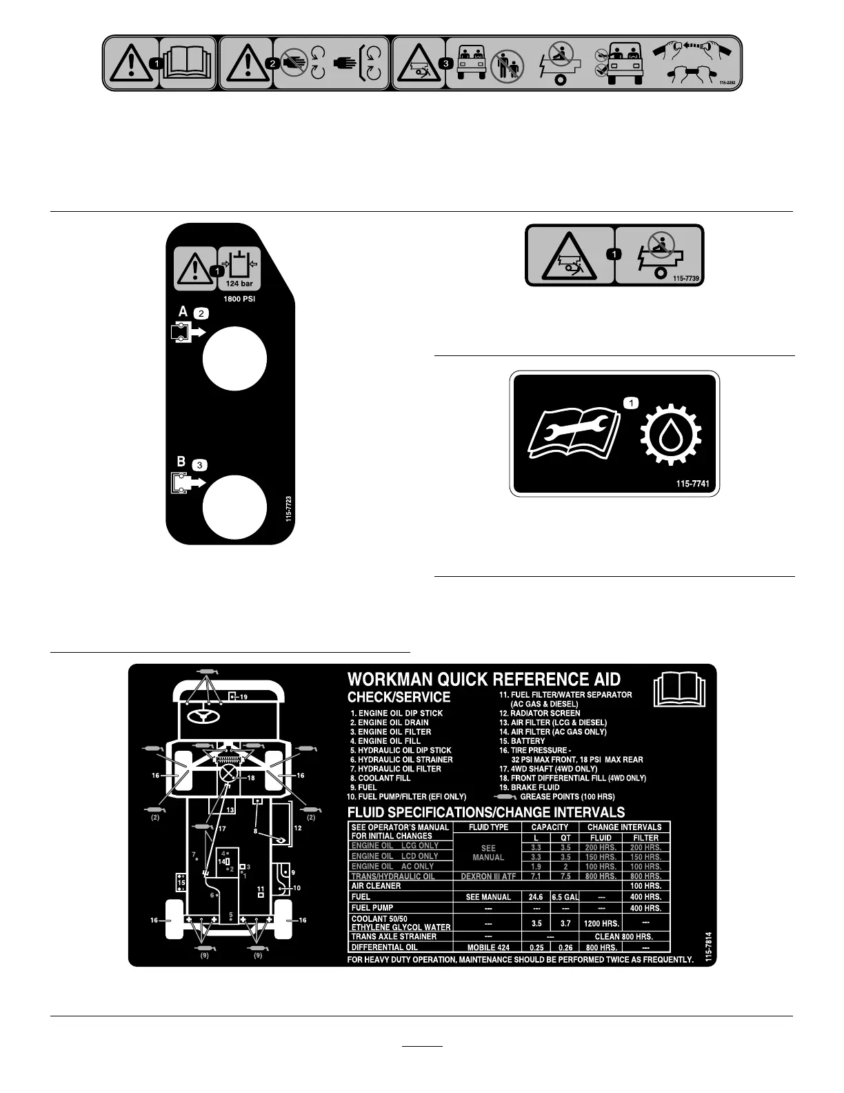 3. Crushing hazard—keep bystanders out of the operating area; do not carry passengers in the cargo bed; keep arms and legs