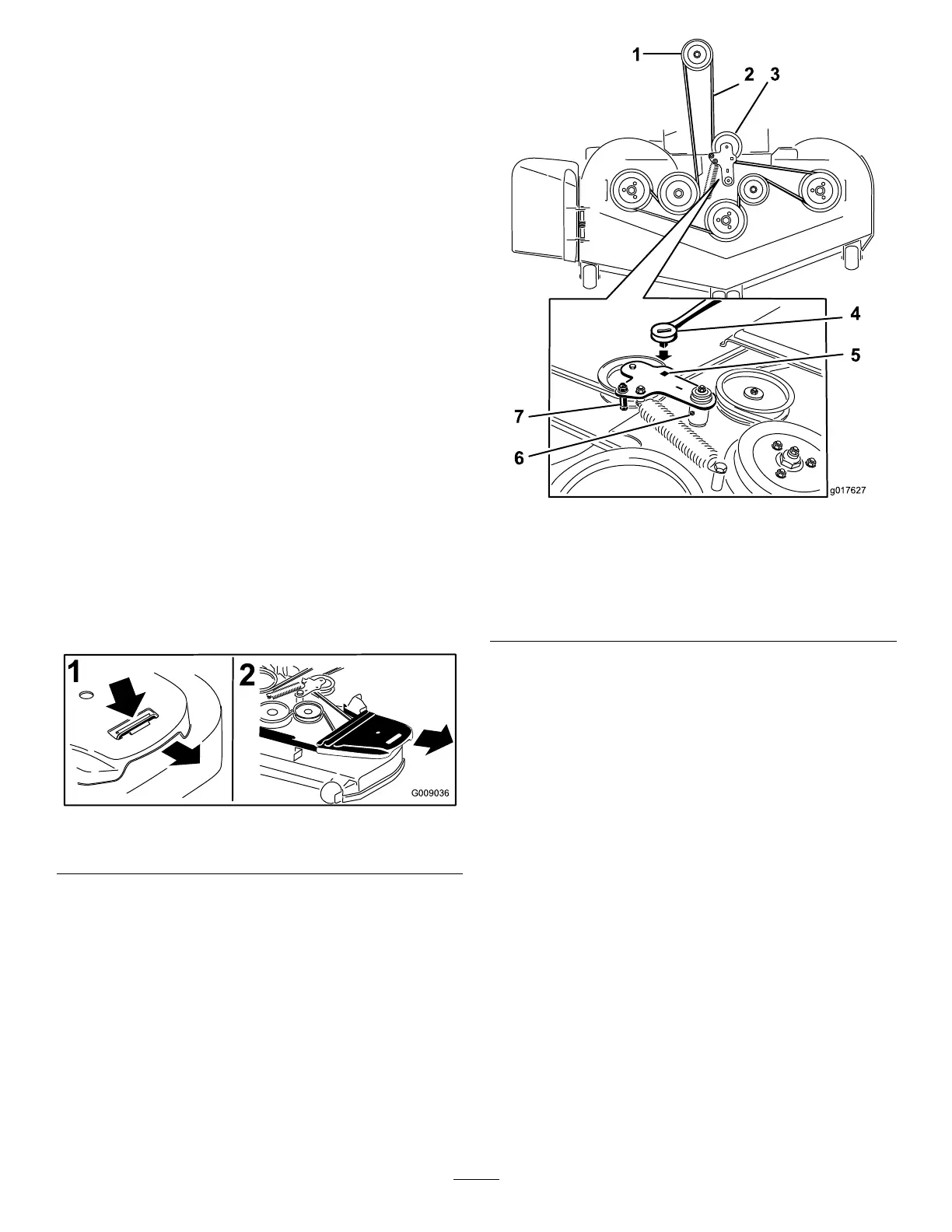 6.Removethebeltfromthemowerdeckpulleys.