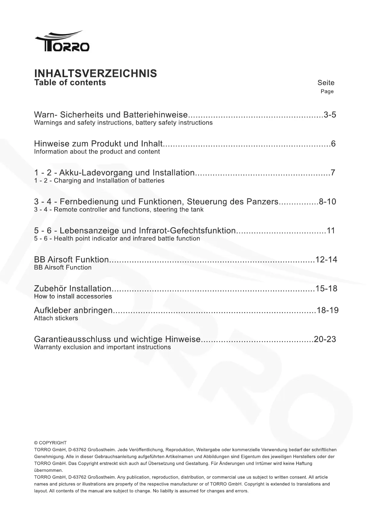 TORRO GmbH, D-63762 Großostheim. Jede Veröffentlichung, Reproduktion, Weitergabe oder kommerzielle Verwendung bedarf der schriftlichen