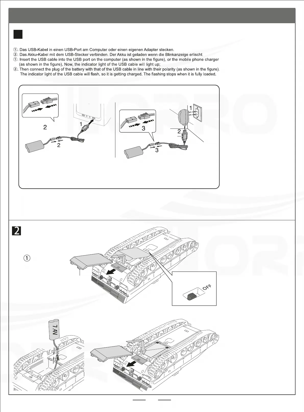 Den Akku im Panzer einsetzen