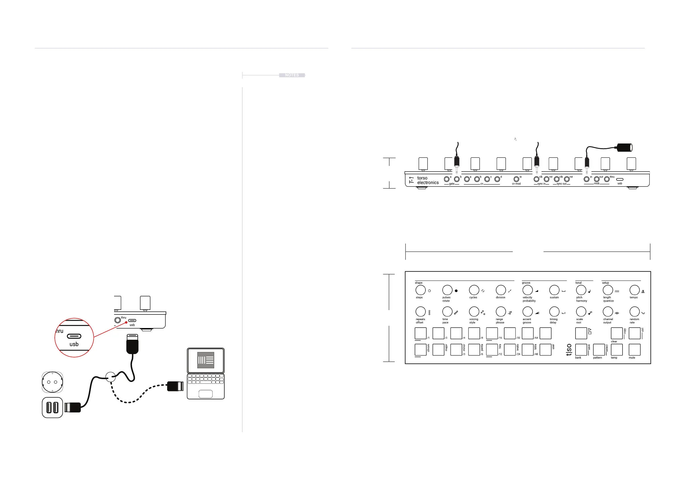 1. Connect the supplied USB-C cable between T-1 Sequencer and a USB