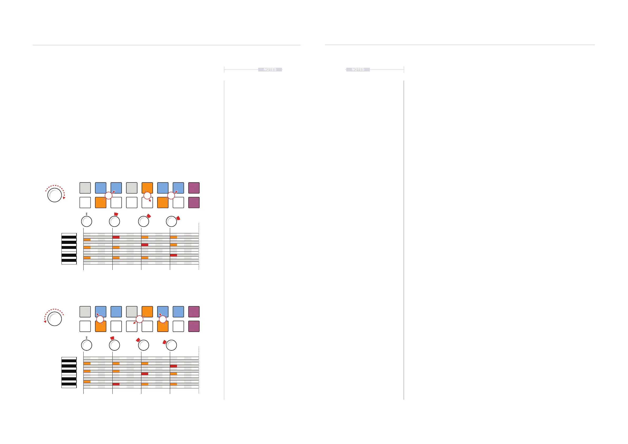 knob counter-clockwise will cyclically move each note individually. Notes are